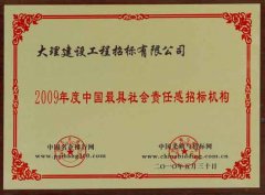 2009年度中國最具社會責(zé)任感招標(biāo)機(jī)構(gòu)榮譽(yù) 日期:2019-02-26點(diǎn)擊:0