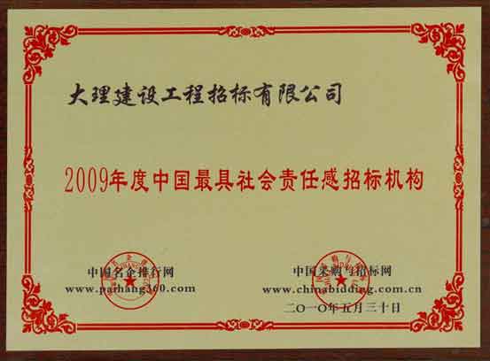 2009年度中國(guó)最具社會(huì)責(zé)任感招標(biāo)機(jī)構(gòu)榮譽(yù)