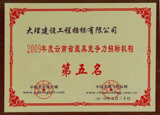 2009年度云南省最具競爭力招標(biāo)機構(gòu)榮譽